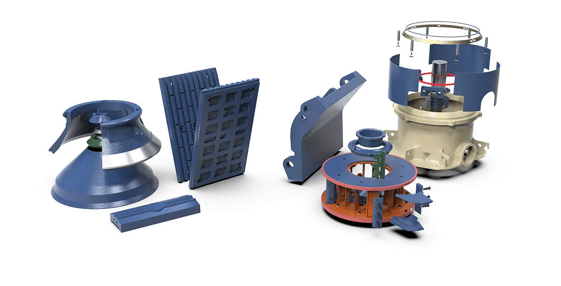 Various precision-cast components designed to fit multiple crusher models, ensuring seamless integration.